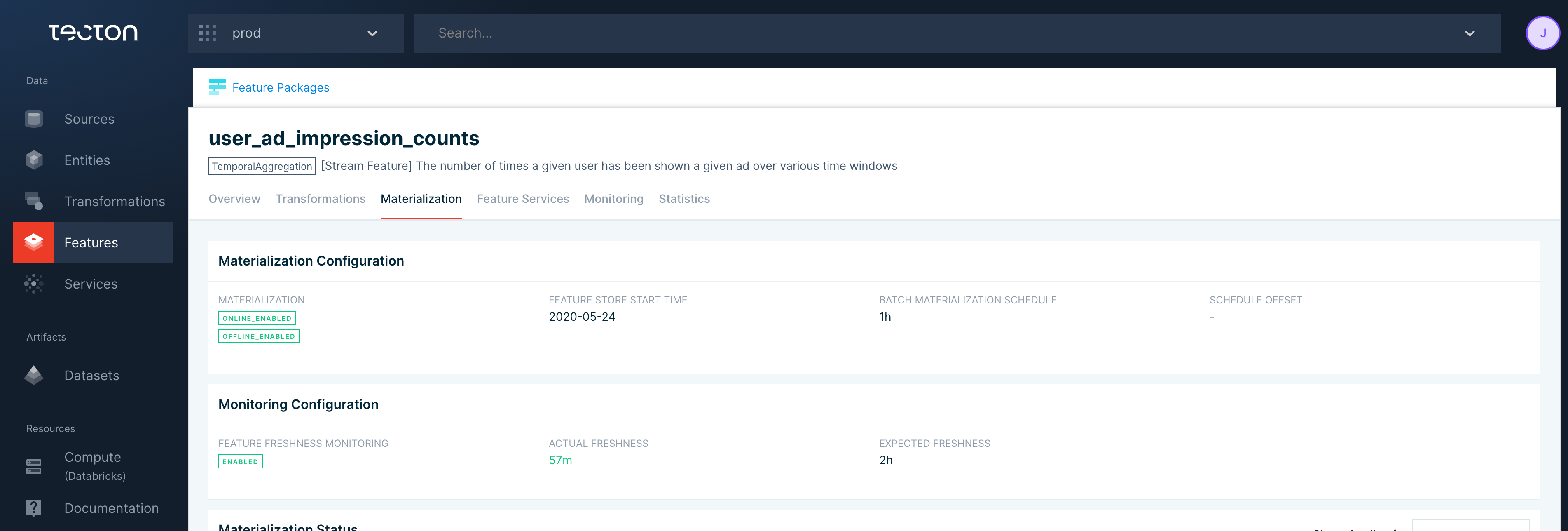 Tecton provides tools to monitor and debug materialized Feature Views from Tecton's Web UI, SDK, and CLI.